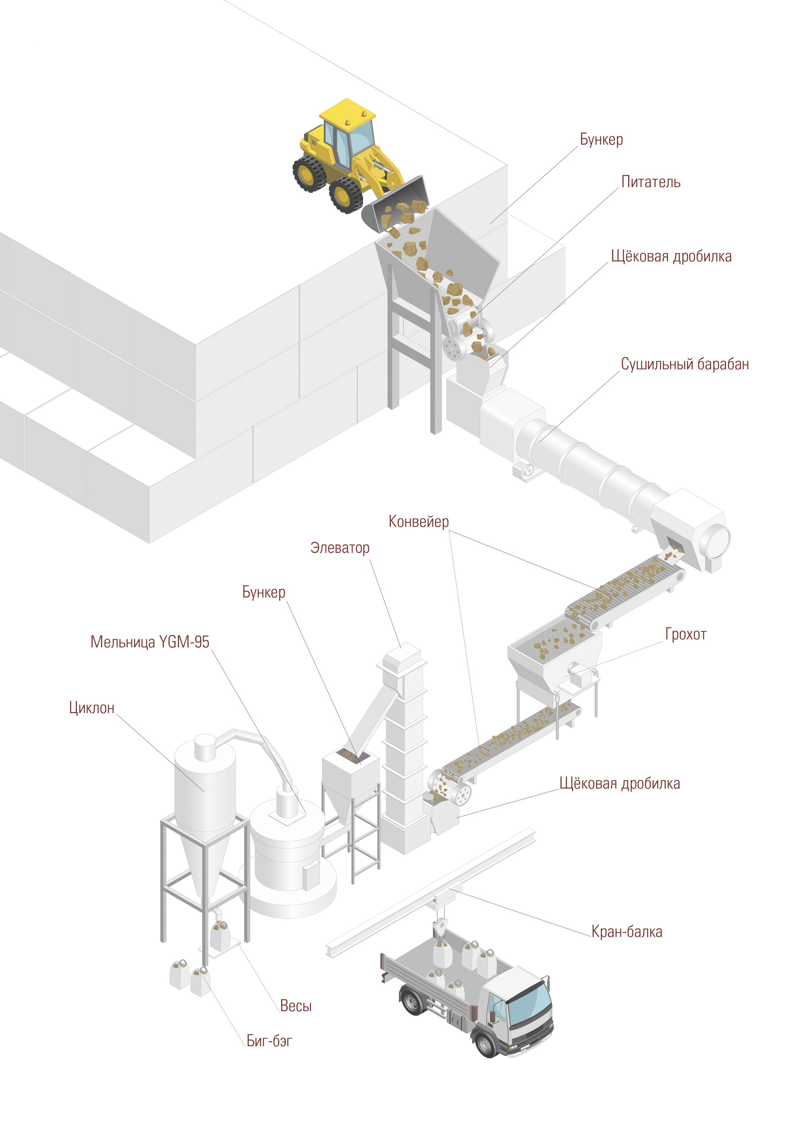 Инфографика технологического процесса переработки кускового баритового концентрата